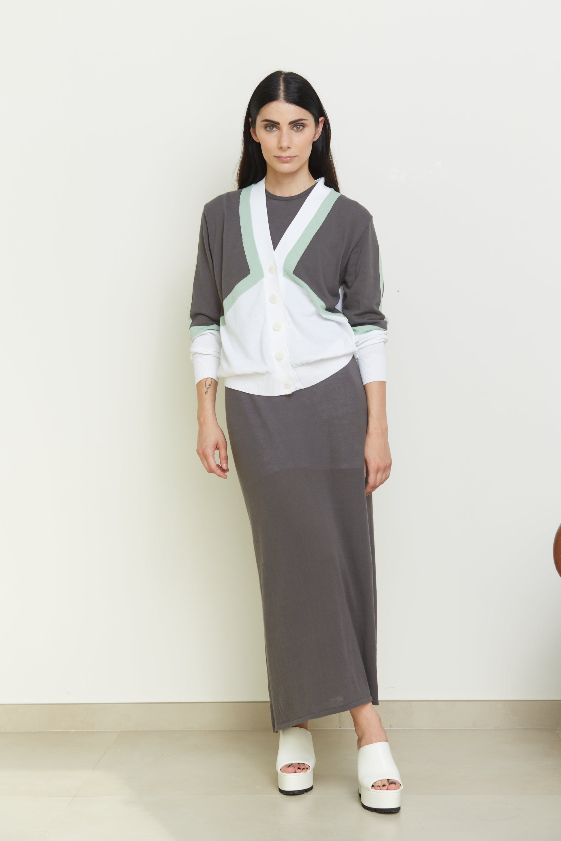 Cardigan leggero con intarsio colorato su davanti e su maniche