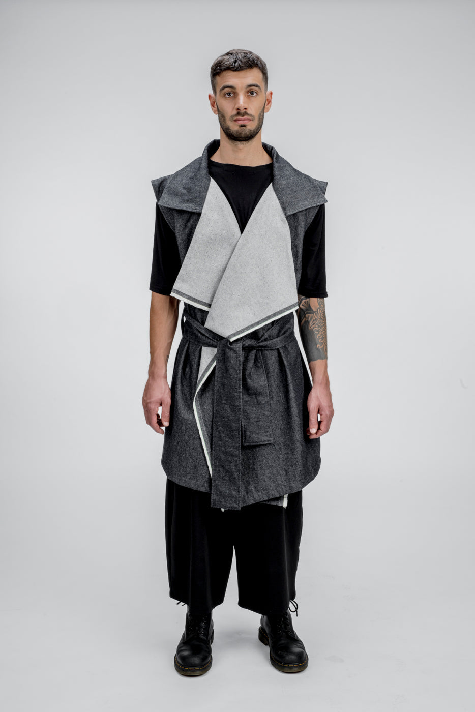 The pattern is developed based on a zero-waste technique that eliminates textile waste at the design stage, specialty of ZEROBARRACENTO.