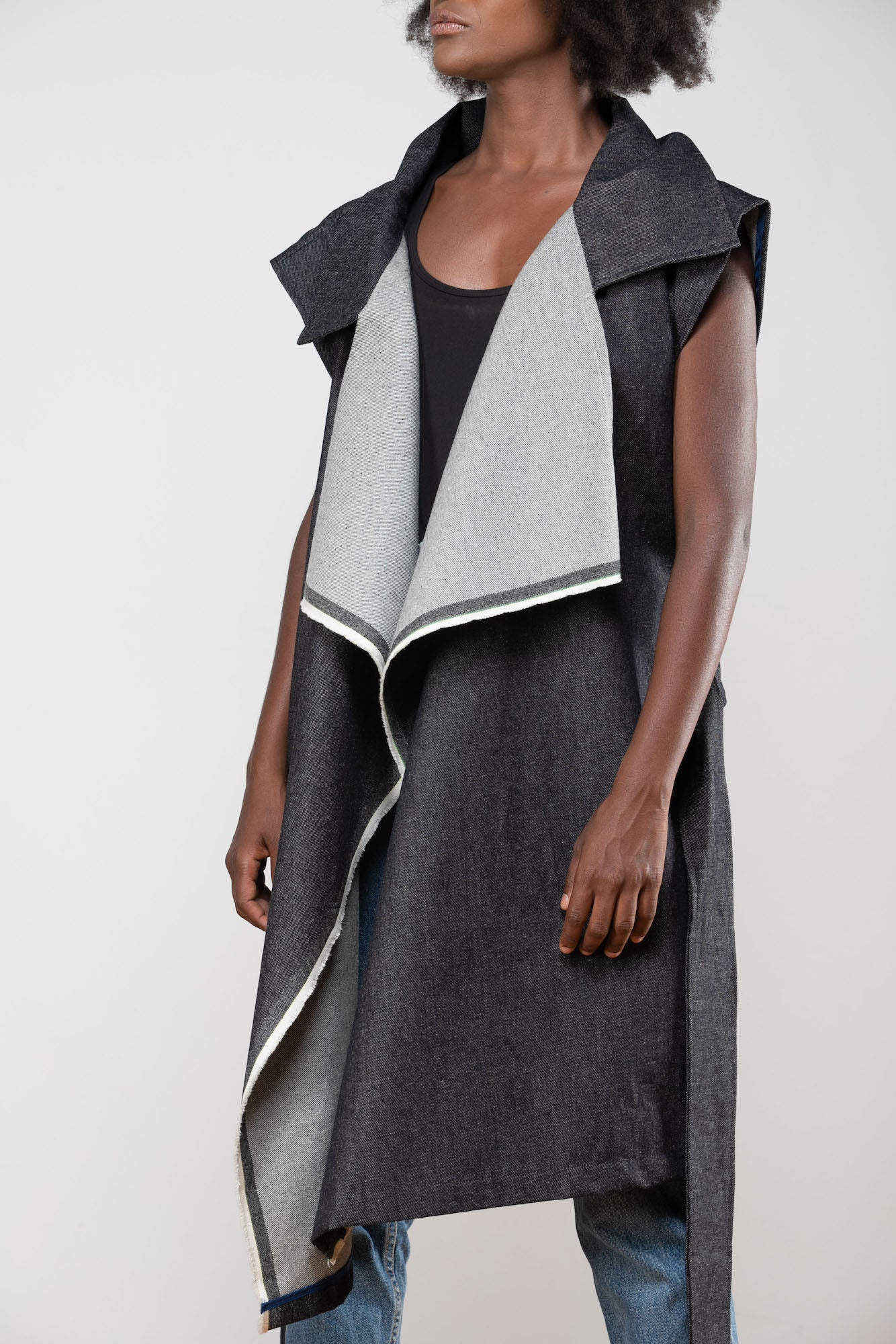 Our EBI is a midi coat with minimalistic shapes, designed to hug the body.