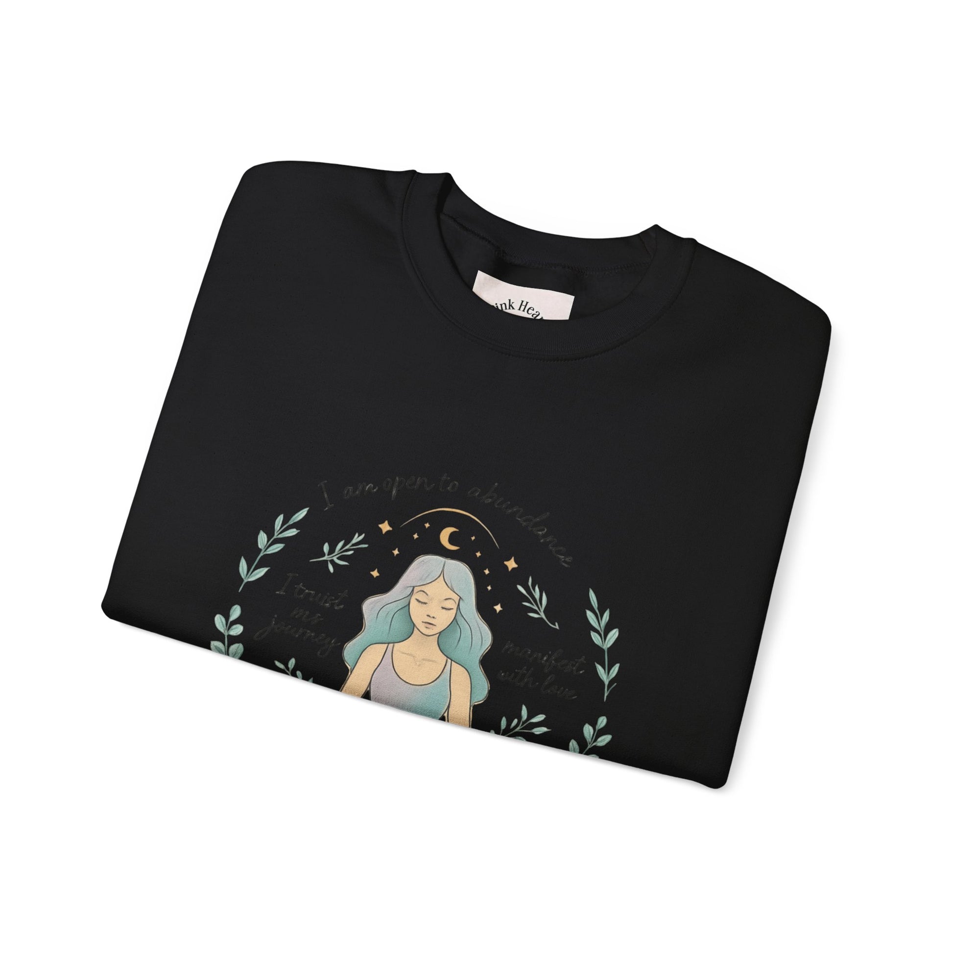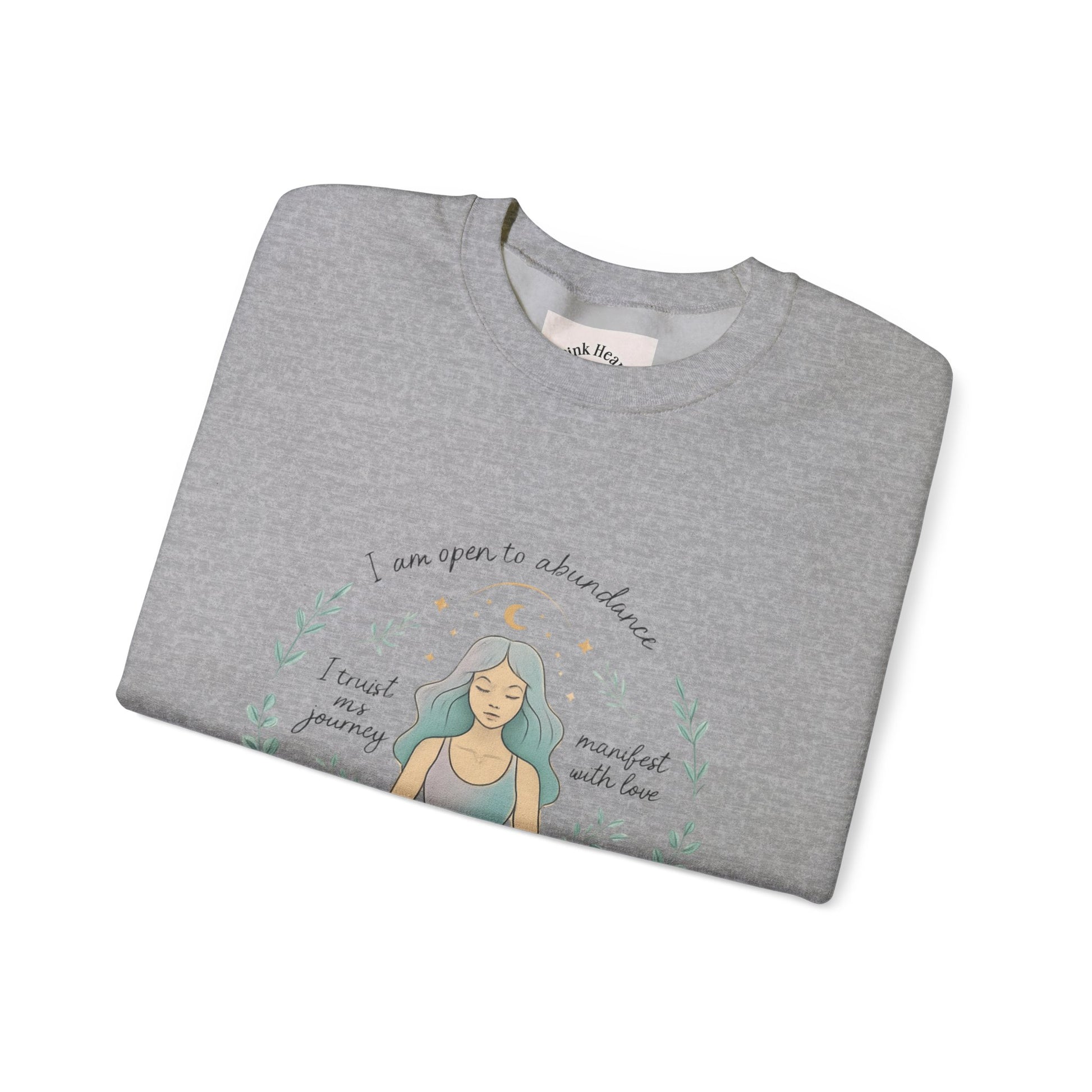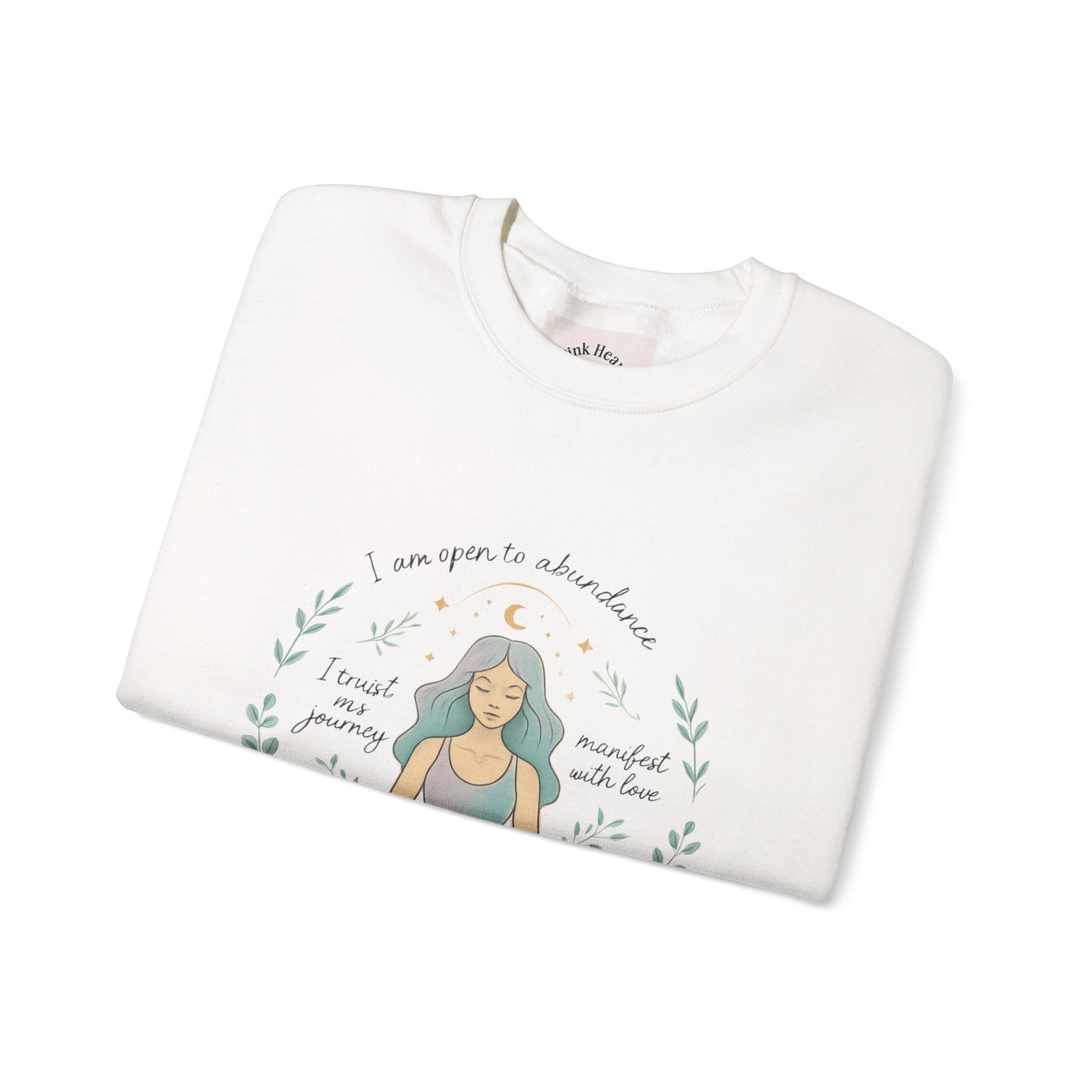 Meditation Girl Crewneck Sweatshirt — "I Am Open to Abundance" Mindfulness Yoga Pullover