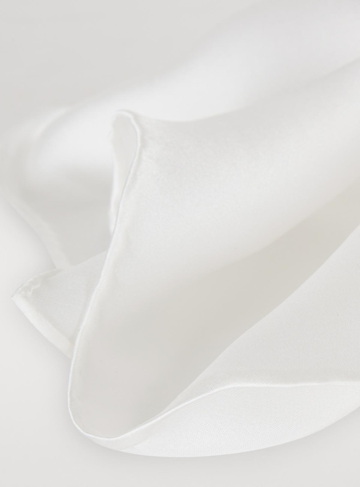 Pochette bianca in 100% seta con bordino a contrasto, un accessorio elegante e sofisticato che aggiunge un tocco di classe a qualsiasi outfit. Con una misura di 30x30 cm, questa pochette si distingue per la sua qualità premium e il design raffinato, ideale per completare look formali o per dare un accento di stile a un abito più casual. Il bordino a contrasto offre un dettaglio distintivo che la rende perfetta per occasioni speciali, regalandoti un aspetto impeccabile e di grande classe. Un must-have per ogni uomo che ama curare i dettagli.