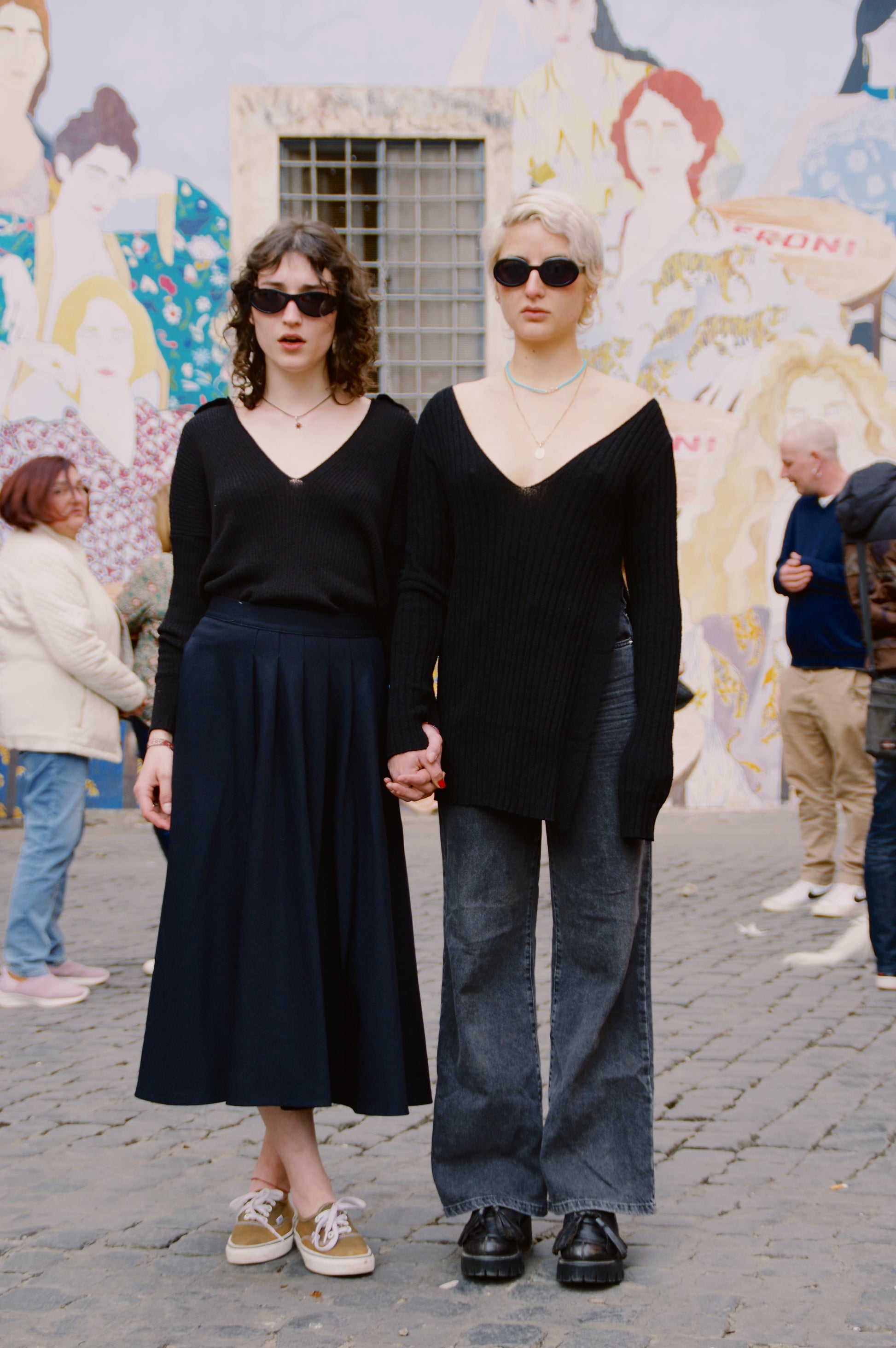 Maglia con scollo a V e spacco diagonale laterale, valorizza il punto vita creando un effetto geometrico che fa la differenza.